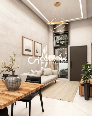 ✔️ Sala e cozinha integradas com pé direito de 3,50m