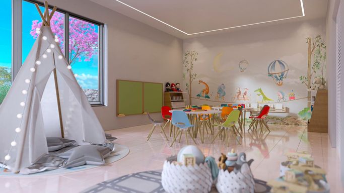 •Mais de 26 itens de lazer: piscina coberta e aquecida, academia completa, brinquedoteca, quadras de beach tennis, espaço gourmet, espaço pet e muito mais